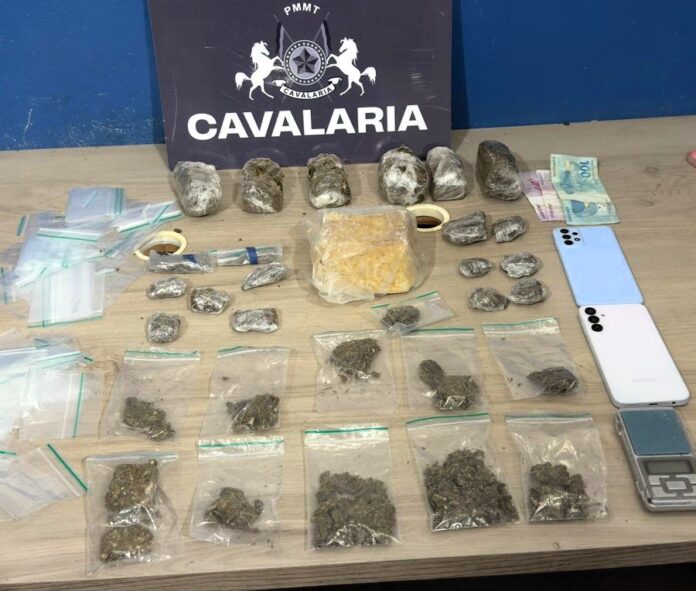 Durante a abordagem, os policiais encontraram nove porções de maconha prontas para venda e R$ 110 em dinheiro. Em seguida, as equipes se deslocaram até a residência do suspeito, onde a companheira dele tentou destruir o próprio celular ao perceber a chegada dos policiais. No imóvel, foram apreendidos uma balança de precisão, embalagens utilizadas para fracionamento de drogas e uma bolsa contendo mais entorpecentes.