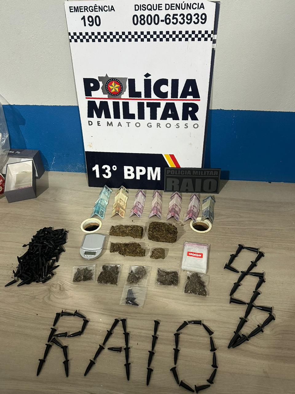 Um motociclista foi preso na noite desta sexta-feira (14) por tráfico de drogas durante patrulhamento do Grupo RAIO, da Polícia Militar, na Avenida da Produção, em Lucas do Rio Verde (MT). A abordagem ocorreu por volta das 20h30, após os policiais perceberem que o condutor trafegava com calçados inadequados, que não firmavam nos pés.