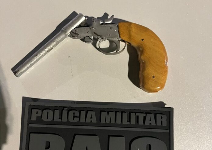 Durante a verificação, os militares localizaram um revólver calibre .22, carregado com uma munição intacta. O suspeito foi encaminhado à Delegacia de Polícia Civil para as devidas providências.