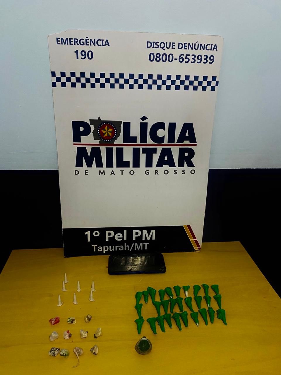 A Polícia Militar apreendeu diversas porções de entorpecentes na noite desta sexta-feira (14), durante a Operação Tolerância Zero, no bairro São Cristóvão, em Tapurah (MT). A ação ocorreu por volta das 23h, quando a guarnição realizava rondas nas proximidades da Avenida Bahia, esquina com a Rua dos Angicos.