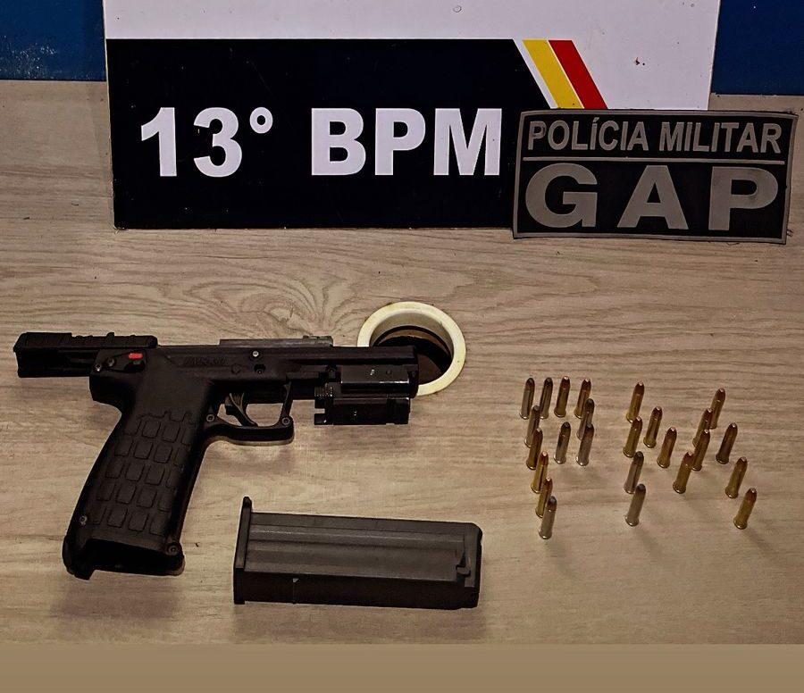 Diante da atitude suspeita, os militares deram ordem de parada e realizaram a abordagem. Na revista pessoal, nada de ilícito foi encontrado, mas durante a busca veicular foi localizada uma pistola calibre .22 Magnum, marca Kel-Tec Cocoa, modelo PMR-30, de fabricação americana, carregada com 25 munições.