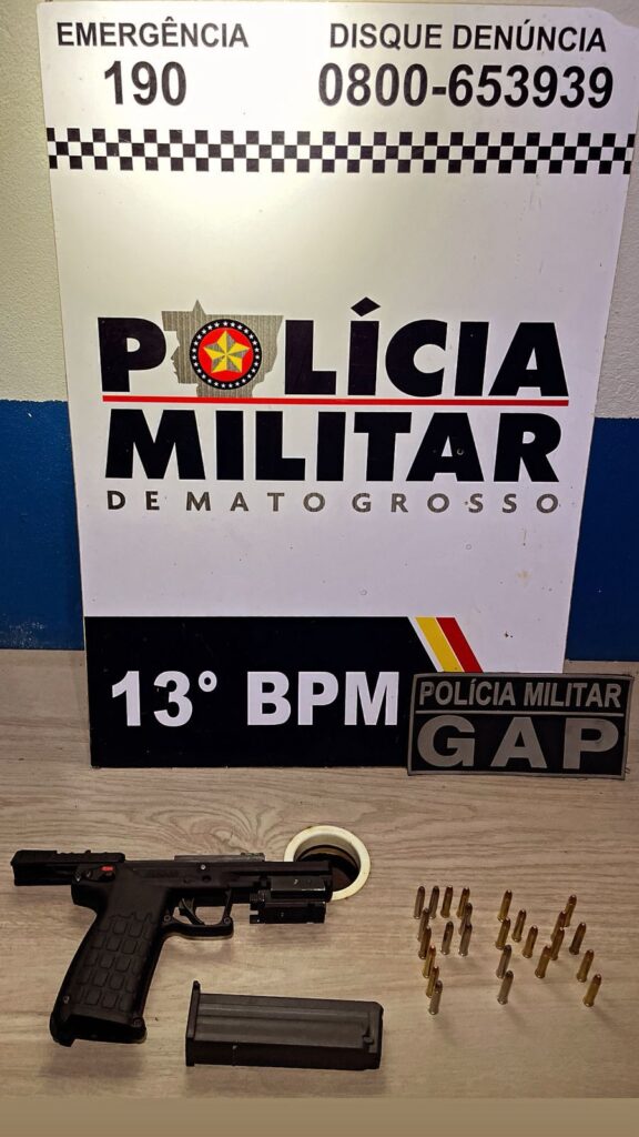 A Polícia Militar apreendeu uma arma de fogo na noite de sexta-feira (31), durante uma abordagem no centro de Lucas do Rio Verde. O caso foi registrado por volta das 20h, durante patrulhamento de rotina realizado por uma equipe do 13º Batalhão.