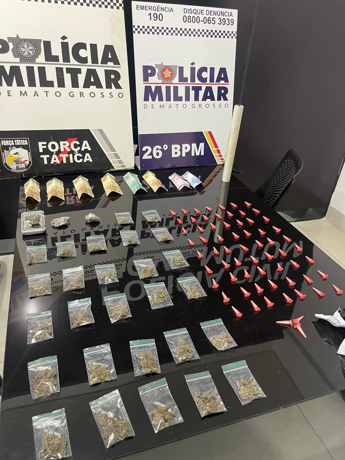 Durante uma operação integrada do 14º Comando Regional, 26º Batalhão da Polícia Militar, Força Tática e Grupamento Raio, realizada na noite desta terça-feira (4), policiais apreenderam entorpecentes e prenderam um homem suspeito de envolvimento com o tráfico de drogas em Nova Mutum.