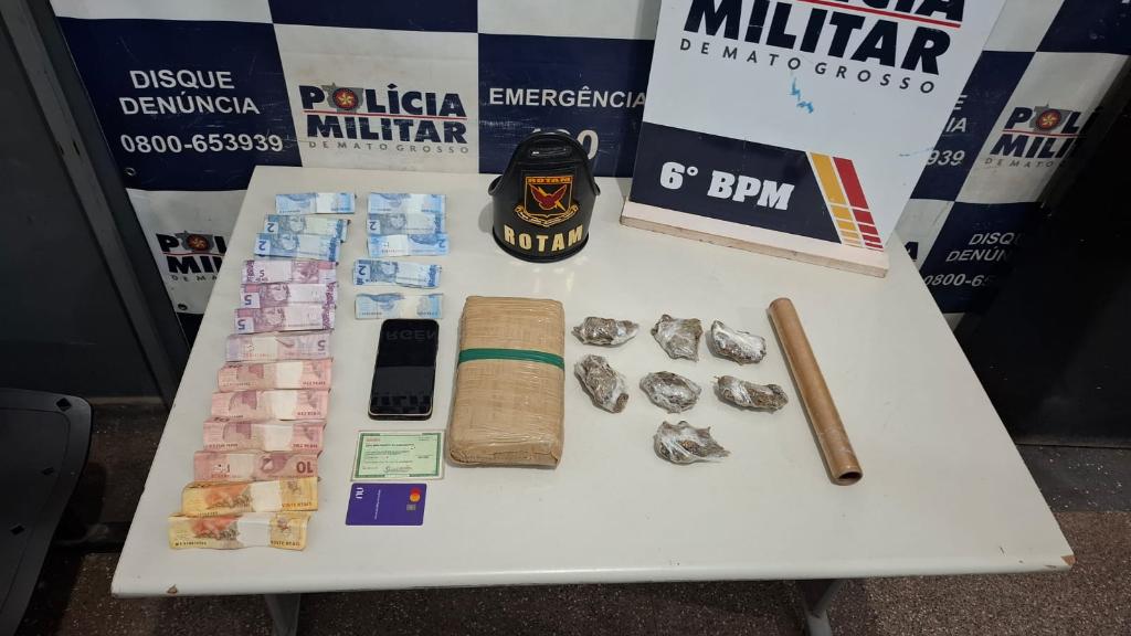 Além disso, o menor confessou que havia mais drogas em sua residência, localizada no bairro Jardim Imperial. Os policiais militares se deslocaram até a residência e encontraram várias outras porções de maconha, um tablete do mesmo entorpecente, R$ 126 em espécie e materiais para embalagem e comercialização das drogas. O menor foi conduzido à delegacia para registro do boletim de ocorrência.