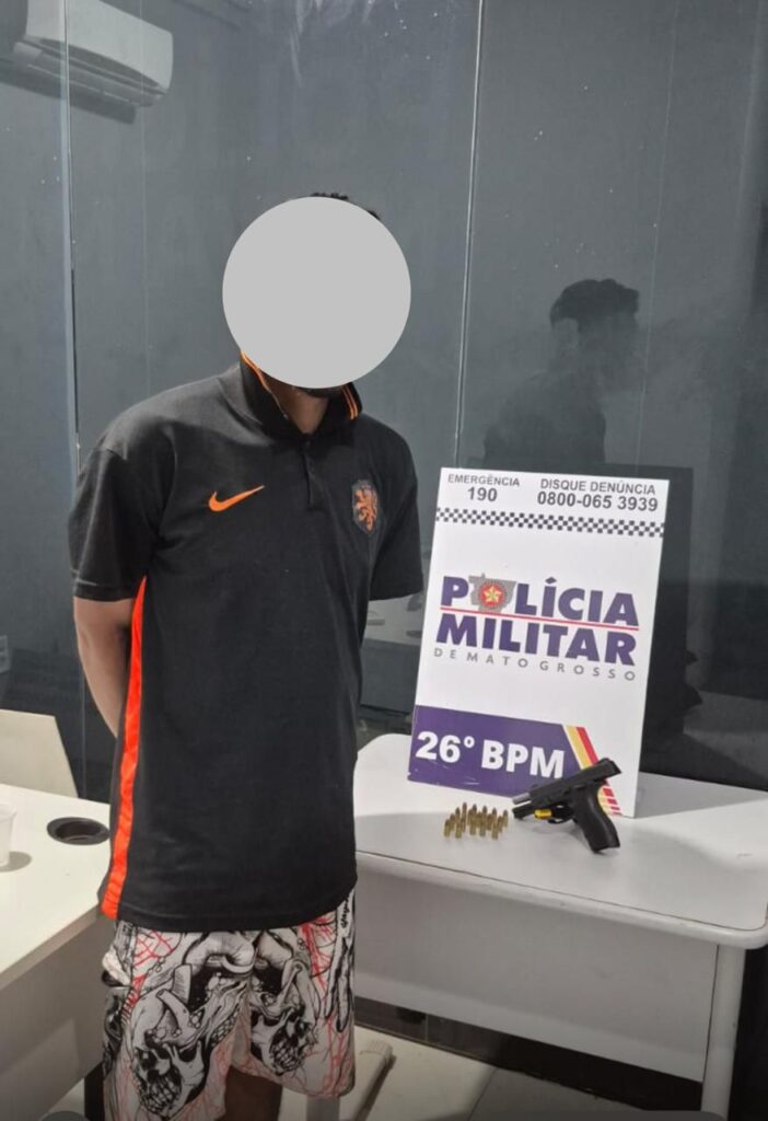 A Polícia Militar do 26° Batalhão prendeu, na madrugada desta quinta-feira (04), um homem por porte ilegal de arma de fogo durante patrulhamento na Avenida dos Pavões, em Nova Mutum. A ação ocorreu por volta das 2h20.