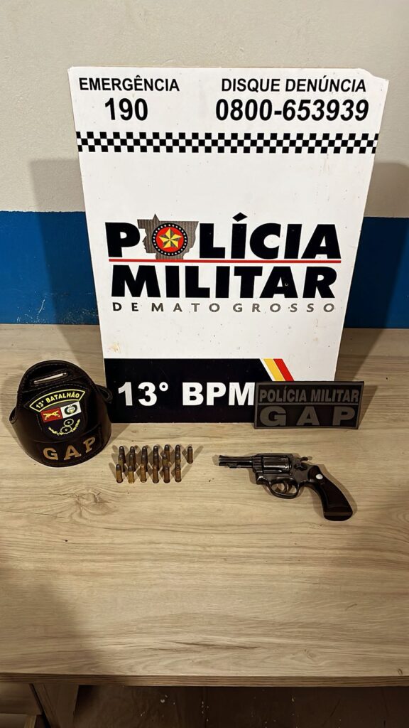 A Polícia Militar de Mato Grosso prendeu um homem por posse irregular de arma de fogo de uso permitido na madrugada deste sábado (20), no bairro Bandeirantes, em Lucas do Rio Verde. A ocorrência foi registrada por volta da 1h30 e atendida por uma guarnição do 13º Batalhão da PM.