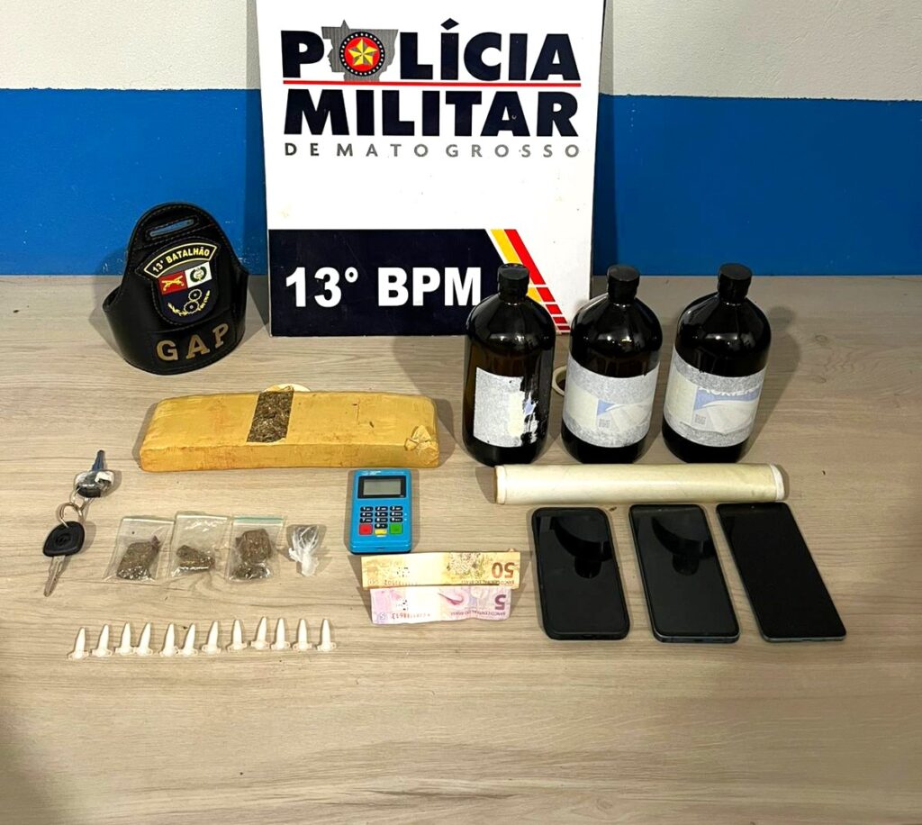 A Polícia Militar de Mato Grosso prendeu três pessoas por tráfico ilícito de drogas, corrupção de menores e associação para o tráfico, na tarde desta segunda-feira (15), em Lucas do Rio Verde. A ocorrência foi registrada por volta das 17h30, no bairro Tessele Júnior, durante patrulhamento ostensivo realizado por uma guarnição do 13º Batalhão.