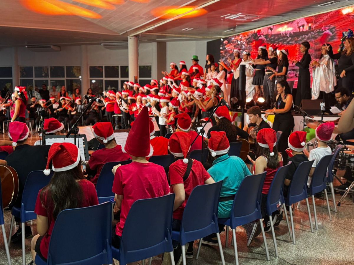 O Recital de Natal é a culminância das aulas extracurriculares oferecidas durante o contraturno das unidades. Os alunos, distribuídos entre cursos de violão, teatro, percussão, cello, jazz, violino e Libras, dedicaram-se por meses à preparação do espetáculo que encerra o ano letivo com brilho e protagonismo estudantil.