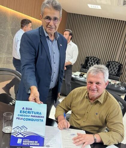 A reunião que aconteceu no último dia 25 de novembro, em Cuiabá, entre o governador Mauro Mendes (União), o deputado estadual Dilmar Dal Bosco (União), Chefe da Casa Civil, Fabio Garcia, o presidente do instituto de Terras de Mato Grosso (Intermat), Serafim Danilo, Associação Apromundo e lideranças da Gleba Divisa, em Novo Mundo (760 km da capital), marcou um capítulo importante na história da regularização fundiária do norte de Mato Grosso. No encontro, foram assinados e entregues, de forma simbólica, os primeiros títulos definitivos de áreas de expansão da gleba, um gesto que confirma, na prática, que o estado começou a tirar da gaveta processos que se arrastam há muitos anos.