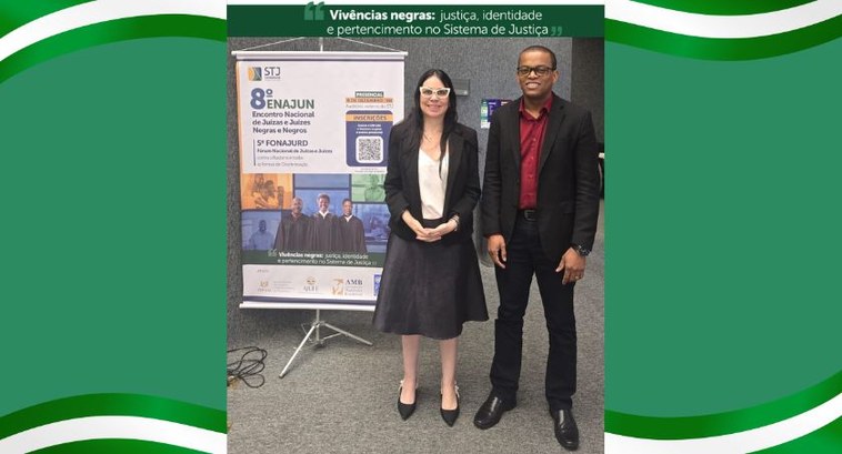A presidente do Comitê de Gestão de Políticas para Promoção da Equidade Racial do Tribunal Regional Eleitoral de Mato Grosso (TRE-MT), juíza Kátia Rodrigues de Oliveira, e o segundo secretário do Comitê, servidor Carlos Henrique Cândido, participam do 8º Encontro Nacional de Juízas e Juízes Negras e Negros (ENAJUN) e do 5º Fórum Nacional de Juízas e Juízes contra o Racismo e todas as formas de Discriminação (FONAJURD). Os eventos ocorrem nesta terça-feira (09.12), no auditório externo do Superior Tribunal de Justiça (STJ), em Brasília (DF).