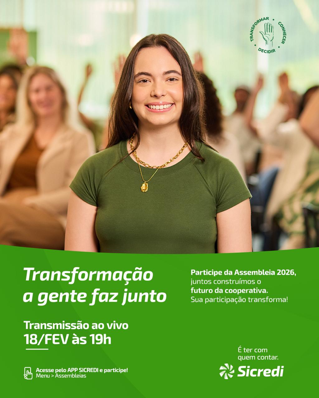 O processo é simples e acessível. Para acompanhar e votar acesse o aplicativo Sicredi no seu celular, no dia 18 de fevereiro, entre na seção Assembleias, participe da transmissão ao vivo e registre seu voto durante a apresentação das pautas. O formato digital garante praticidade, agilidade e segurança, permitindo que mais associados tenham voz e presença ativa no processo decisório.