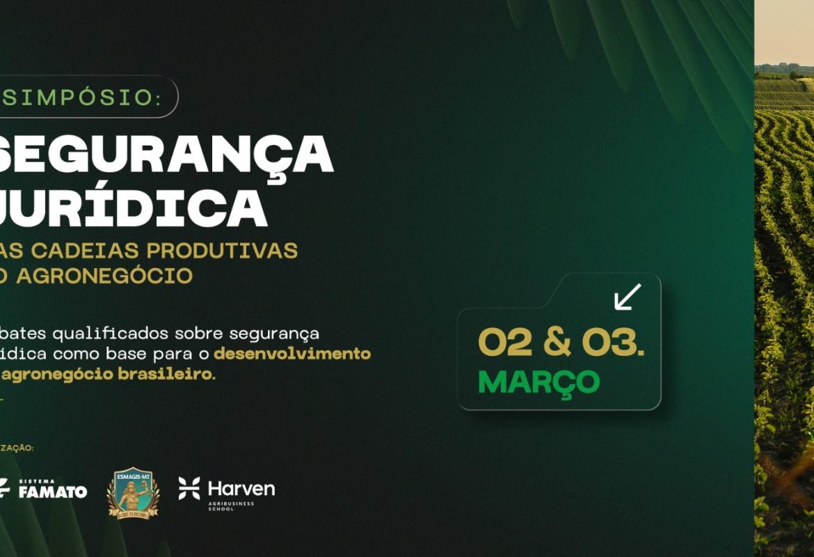 A Famato, Federação da Agricultura e Pecuária de Mato Grosso, realiza, nos dias dois e três de março, o I Simpósio Segurança Jurídica nas Cadeias Produtivas do Agronegócio.
