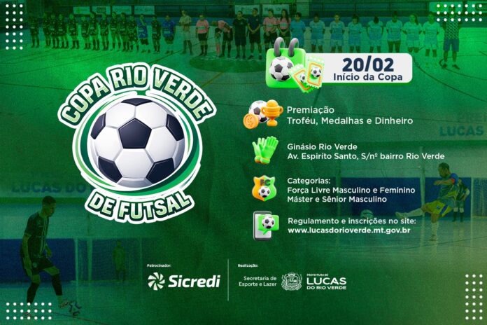 A Prefeitura de Lucas do Rio Verde, por meio da Secretaria de Esporte e Lazer, abrirá na próxima terça-feira (20) as inscrições para a Copa Rio Verde de Futsal. A competição conta com apoio da Sicredi Ouro Verde e é aberta a equipes do município e de outras localidades.
