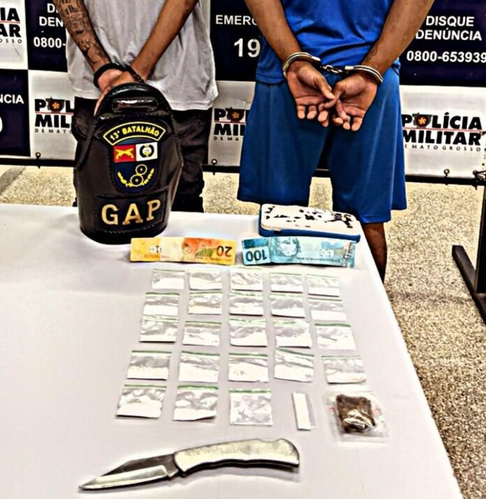 A abordagem foi realizada logo em seguida. Durante a revista pessoal, os policiais localizaram no bolso da calça um papelote de substância análoga à maconha, a quantia de R$ 120 em dinheiro e um canivete preso à cintura. O abordado informou ser menor de idade, e, diante disso, os militares solicitaram o endereço da residência para verificação documental e comunicação aos responsáveis legais.