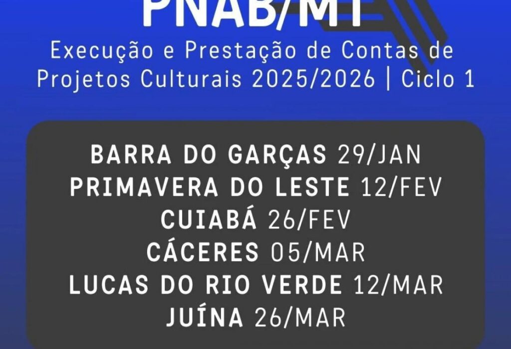 Em março as oficinas vão acontecer em Cáceres, no dia cinco. Lucas do Rio Verde, dia 12, e a última etapa dos eventos presenciais acontece em Juína, no dia 26 de março.