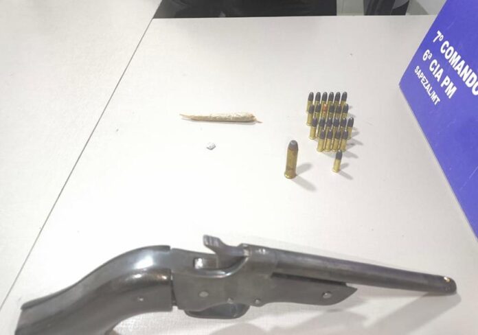 Durante busca veicular, as equipes apreenderam o armamento, as munições e um cigarro análogo à maconha. Os policiais militares constataram, ainda, que o veículo estava irregular. O homem foi entregue à delegacia para registro do boletim de ocorrência.