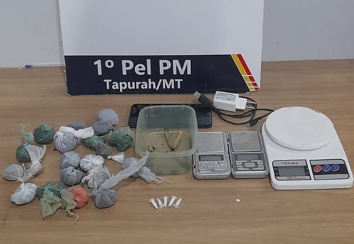 A Polícia Militar do Estado de Mato Grosso apreendeu drogas e materiais relacionados ao tráfico na manhã desta terça-feira (21), durante uma ação realizada no município de Tapurah. A ocorrência foi atendida por uma guarnição do 13º Batalhão de Polícia Militar, com apoio do 1º Pelotão.