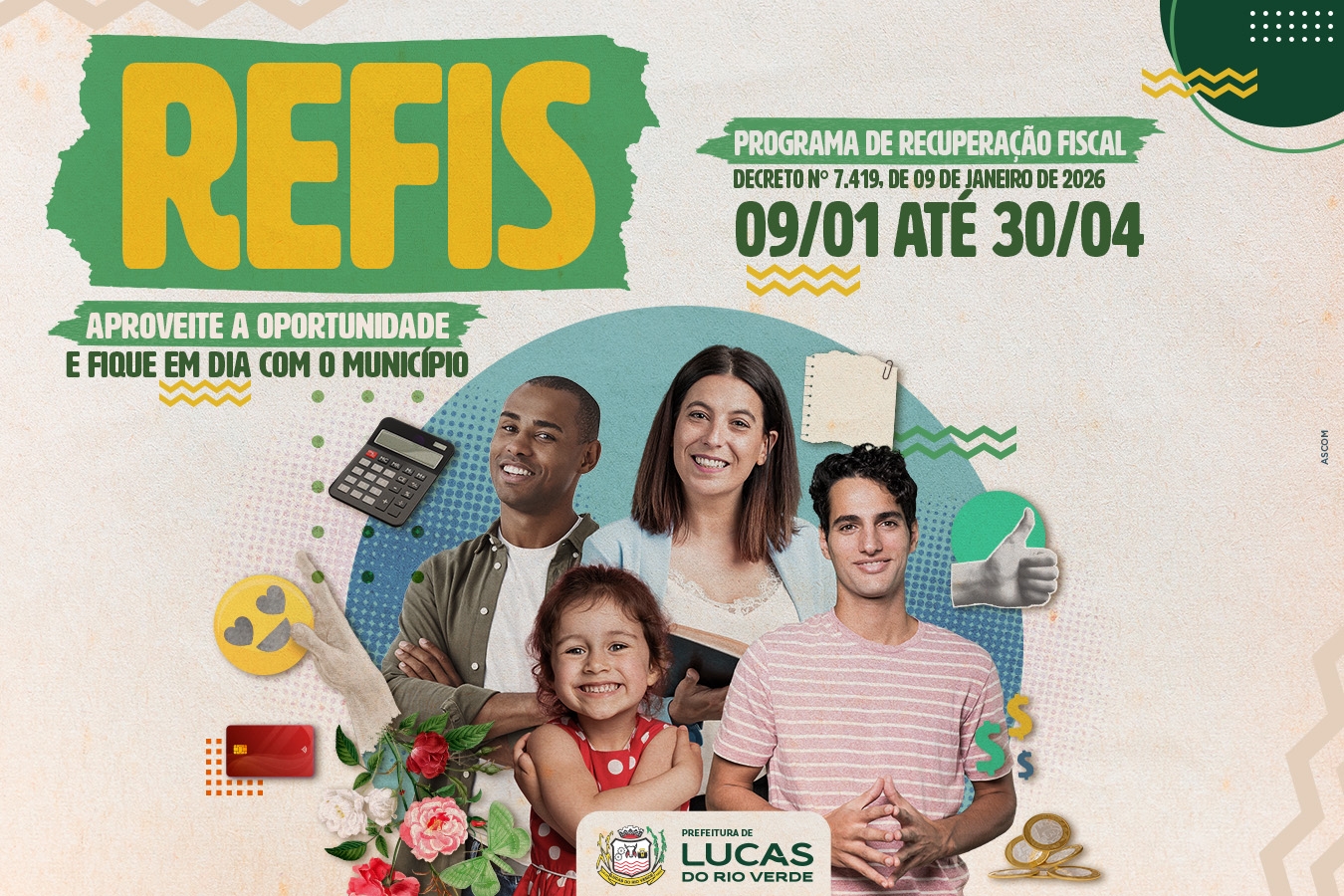 Confira o Decreto Nº 7419/2026: https://leismunicipais.com.br/a1/mt/l/lucas-do-rio-verde/decreto/2026/742/7419/decreto-n-7419-2026-regulamenta-a-lei-complementar-n-272-2024-que-institui-o-refis-programa-de-recuperacao-fiscal-do-municipio-de-lucas-do-rio-verde-mt-e-da-outras-providencias?q=7419