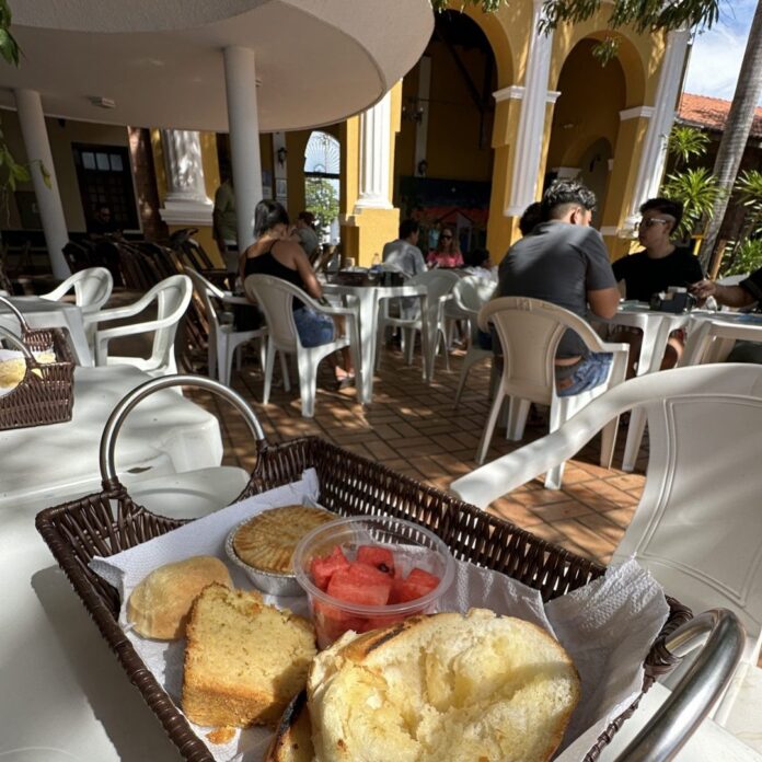 Já o combo Arara Azul vem com pão na chapa, bolo de queijo, chipa tradicional e com goiabada, bolo de arroz, café, chocolate quente e fruta, ao valor de R$ 37,00.