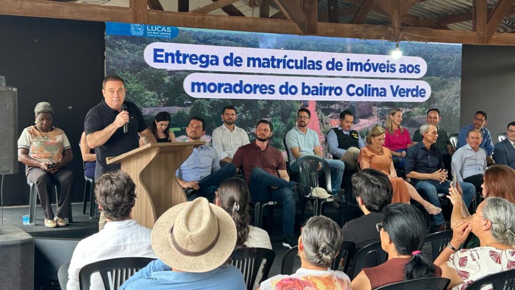 Os vereadores da Câmara Municipal de Lucas do Rio Verde participaram, na quinta-feira (15), da entrega oficial das matrículas de imóveis da primeira etapa da Regularização Fundiária Urbana (Reurb) do bairro Colina Verde. O evento, promovido pela Prefeitura Municipal, foi realizado na Chácara do Vasconcelos e marcou um momento histórico para as famílias da localidade.