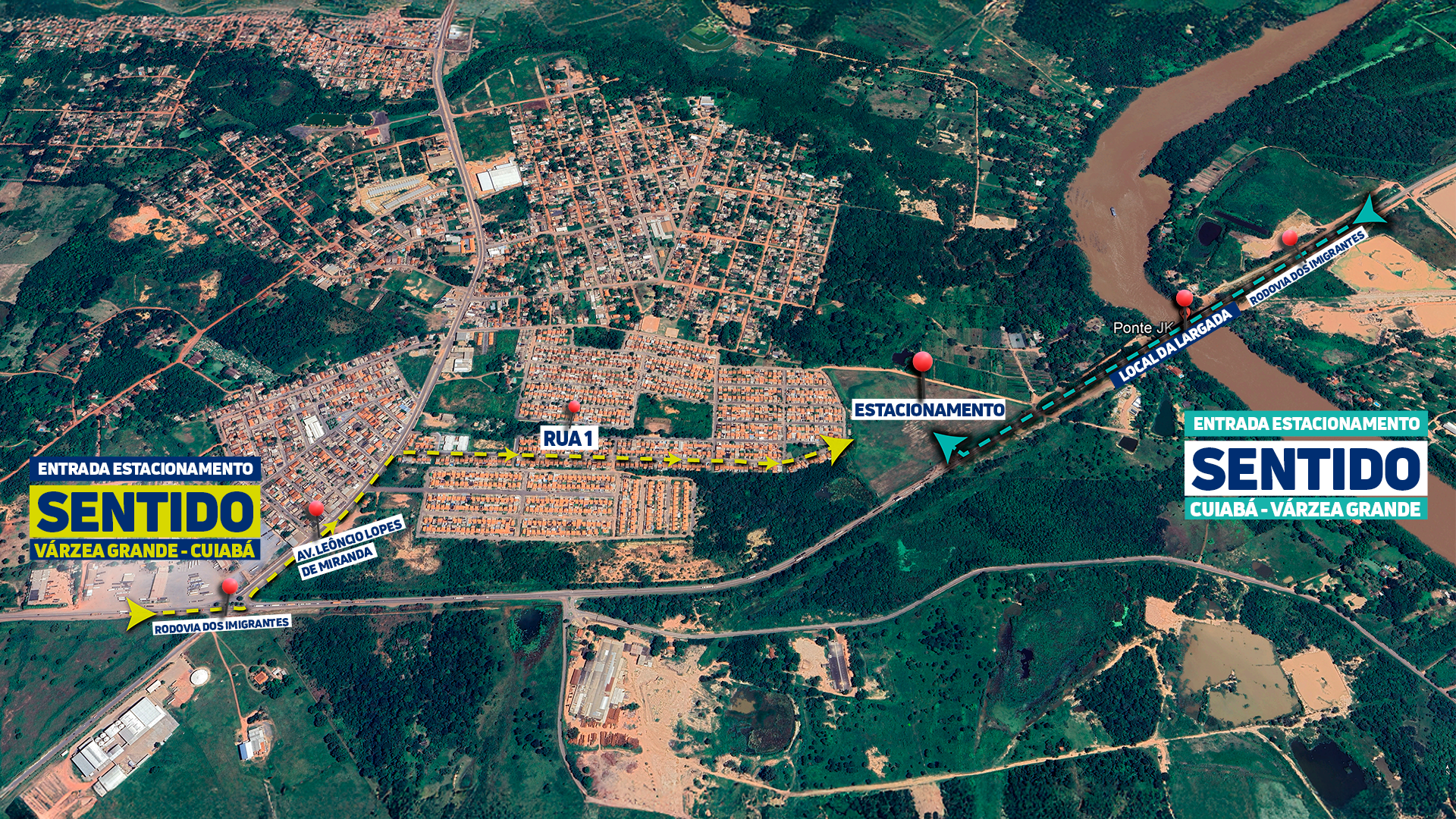 Para seguir por Cuiabá em direção à corrida, o acesso ao estacionamento está disponível neste link: https://maps.app.goo.gl/7PjhWJMgeJoUkE3h8