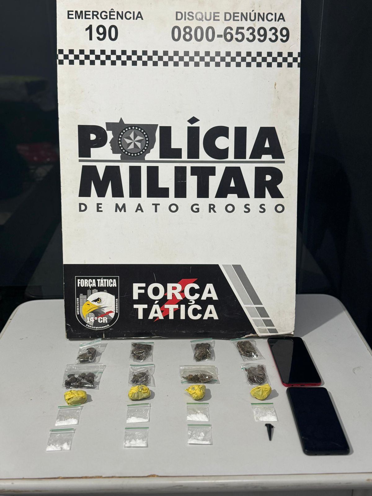A Força Tática do 14º Comando Regional apreendeu dois menores de idade por envolvimento com o tráfico ilícito de drogas na noite desta segunda-feira (02), no bairro Jardim Imperial, em Nova Mutum. A ocorrência foi registrada por volta das 21h33, durante patrulhamento tático realizado pela equipe na região.