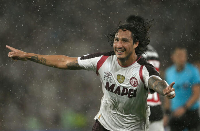 Com o Flamengo vendido e buscando desesperadamente um gol para evitar a derrota, Aquino aproveitou uma bola recuperada no mano a mano com Erick Pulgar e usou sua velocidade para marcar o terceiro do Lanús garantir o título.