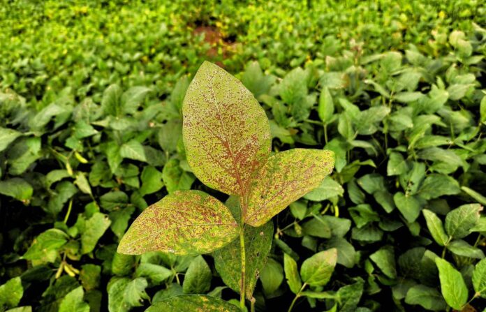 Uma das mais temidas e comuns é a ferrugem asiática da soja, com potencial de provocar até 90% de perda da produtividade. Atualmente, o Brasil registra 301 casos, conforme dados do Consórcio Antiferrugem.