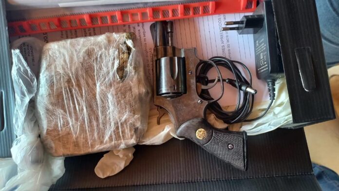 Durante as buscas no interior do estabelecimento, os policiais apreenderam munições, reforçando os indícios de atuação criminosa. Diante da suspeita de que o investigado teria dispensado a arma de fogo nos fundos do imóvel, a equipe deu continuidade às buscas, realizando varredura na área adjacente, localizando e apreendendo o armamento em um terreno situado atrás da residência.