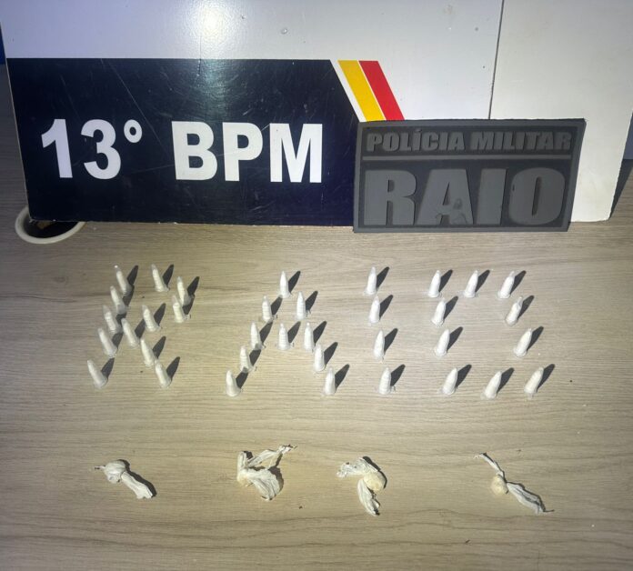 Ao todo, foram apreendidos 36 pinos de substância análoga à cocaína e quatro pedras de substância análoga à pasta base.