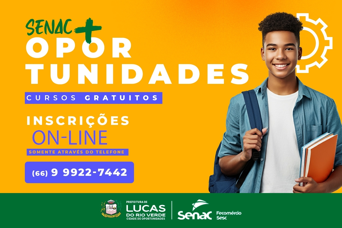 A Prefeitura de Lucas do Rio Verde, em parceria com o Senac, está com inscrições abertas para o curso gratuito de Noções Básicas das Rotinas Administrativas. A formação será realizada de 2 a 13 de março de 2026, com carga horária de 40 horas, no período vespertino, de segunda a sexta-feira.