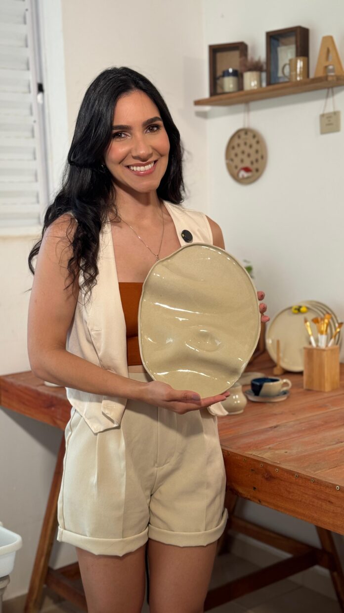 Para Amanda Corina, a cerâmica representa a possibilidade de transformação. “A parte mais legal é pensar como a matéria-prima da argila pode se transformar em qualquer coisa que eu quiser”, resume. O contato com a cerâmica começou de forma muito pessoal: ainda noiva, ela decidiu produzir o próprio enxoval de casamento. O desejo antigo de aprender a técnica, alimentado por referências visuais e pela curiosidade, encontrou ali a oportunidade de se concretizar por meio de aulas e experimentações.