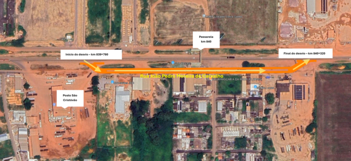 A Nova Rota do Oeste inicia, nesta quarta-feira (11/02), as obras de recuperação e reforço estrutural da passarela de pedestres localizada no km 840 da BR-163/MT, em Sinop. Para a execução dos serviços, o fluxo de veículos será desviado em um trecho de aproximadamente 500 metros da rodovia.