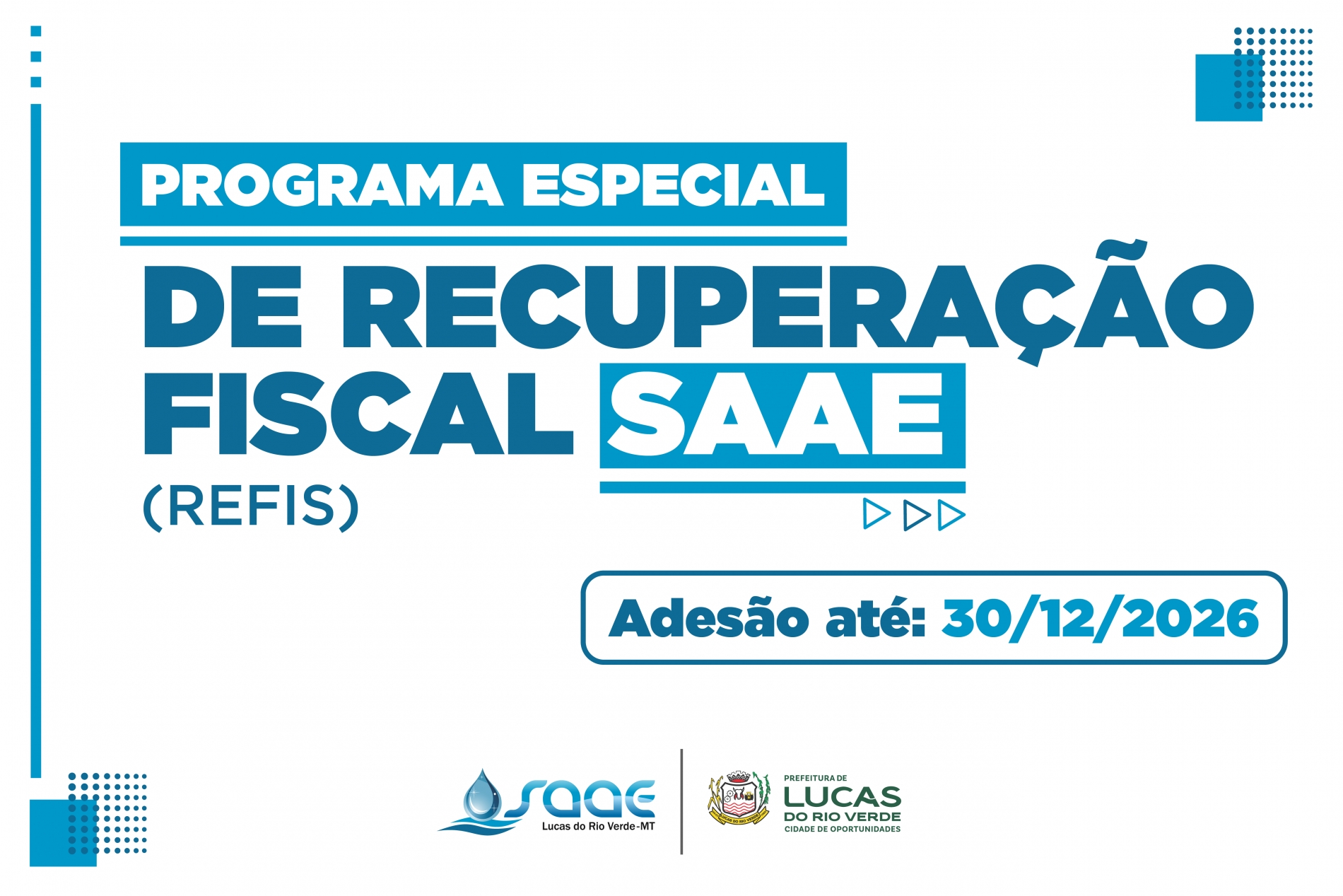 Contribuintes que possuem débitos de tarifa de água, taxa de coleta de esgoto e de resíduos sólidos, ou que possuem dívidas decorrentes de penalidades por infrações e relacionados aos serviços de saneamento, já podem aderir ao Refis do Serviço Autônomo de Água e Esgoto de Lucas do Rio Verde.