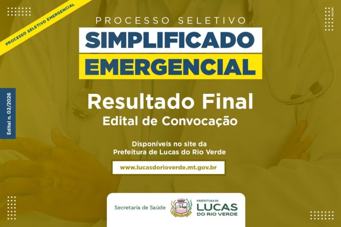 A Prefeitura de Lucas do Rio Verde finalizou na tarde desta quinta-feira (26), Processo Seletivo Emergencial Simplificado (Edital n. 002/2026). Os editais com o resultado final e de homologação estão disponíveis no site oficial.