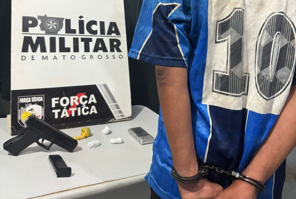 Um homem foi detido na noite de quinta-feira (12) durante uma ação da Força Tática do 14º Comando Regional, no Centro de Nova Mutum (MT), suspeito de envolvimento com tráfico de drogas e ameaça.