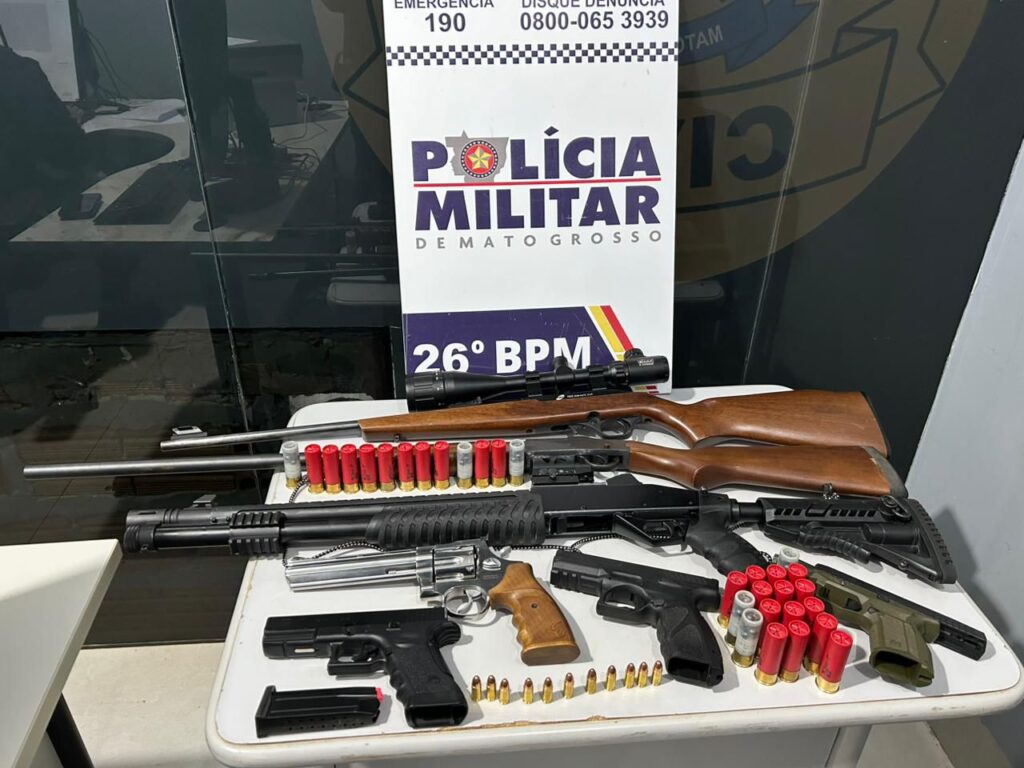 De forma voluntária, a vítima entregou aos policiais três armas longas, três pistolas (sendo uma do tipo airsoft), um revólver e uma mochila contendo diversas munições intactas, que estavam dentro da residência. Todo o material foi apreendido e encaminhado para as providências legais.