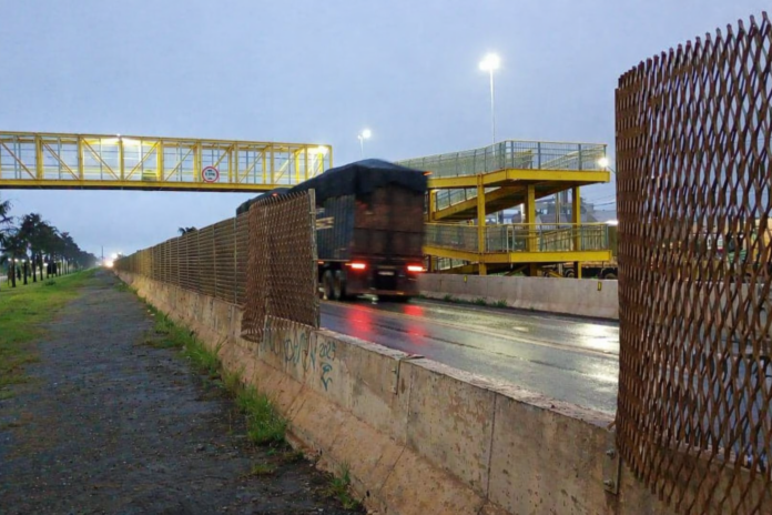 As barreiras foram projetadas para desestimular a travessia no meio da pista e direcionar o pedestre ao uso da passarela, estrutura construída justamente para garantir uma travessia segura. Quando essas proteções são quebradas, abre-se espaço para o risco: pedestres voltam a cruzar a pista entre os veículos, em pontos de intenso fluxo e velocidade.