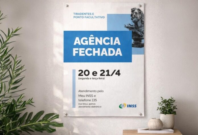 As agências do INSS, Instituto Nacional do Seguro Social, em todo o Brasil estarão fechadas nesta segunda e terça-feira, 20 e 21 de abril, em razão de ponto facultativo e feriado nacional de Tiradentes, definidos pelo Governo Federal.