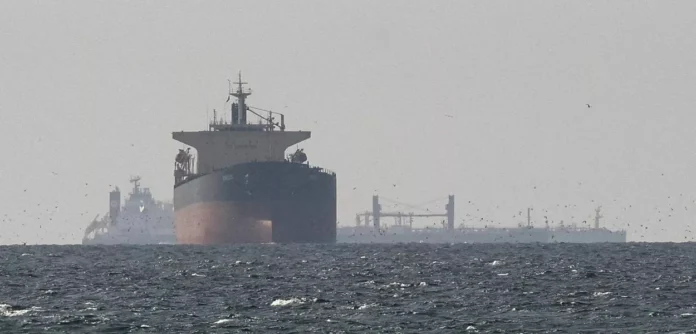 Navios cargueiros no Golfo, próximos ao Estreito de Ormuz, vistos do norte de Ras al-Khaimah, perto da fronteira com a governadoria de Musandam, em Omã, em meio ao conflito dos EUA e Israel com o Irã, nos Emirados Árabes Unidos (Foto: Stringer/Reuters)