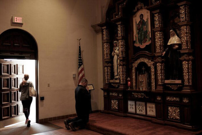 Quando Stuart Sepulvida chega à Paróquia Católica Romana de São Francisco de Sales, em Tucson, Arizona, para a missa, que frequenta quase todas as manhãs, ele passa por uma exposição que homenageia os soldados locais e incentiva os paroquianos a rezarem por sua segurança. Centenas de pequenos cartões registram seus nomes: Robles, Arenas, Grajeda. Um retrato do papa Leão XIV está pendurado no saguão.
