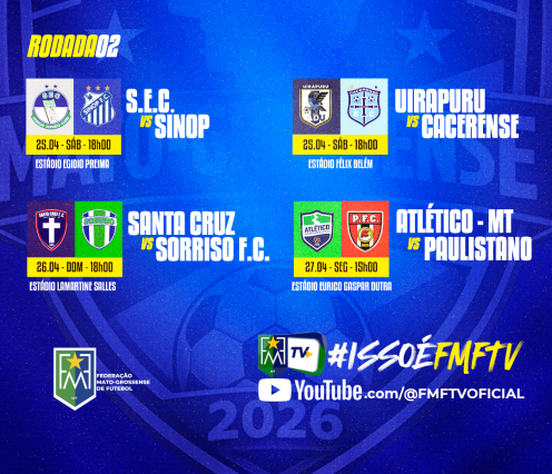 Após a abertura da competição, o Assaí Mato-grossense 2ª Divisão 2026 avança para a segunda rodada, com jogos entre sábado (25) e segunda-feira (27). Confira os confrontos: