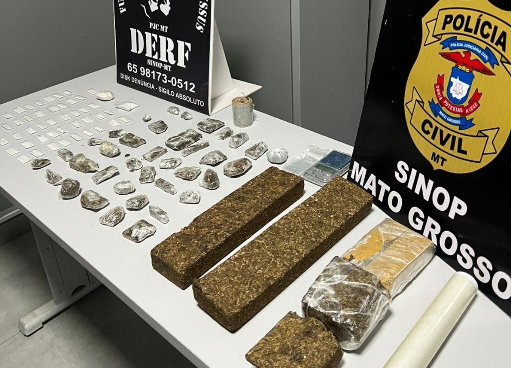 Durante o cumprimento de um dos mandados, no bairro Jardim Califórnia, o suspeito um dos alvos foi preso em flagrante por tráfico ilícito de drogas. Com ele foram apreendidos 48 porções de cocaína fracionada em papelotes prontos para comercialização, 37 porções de maconha e três tabletes de maconha, além de materiais utilizados para o acondicionamento e pesagem de entorpecentes, como insufilmes e uma balança de precisão. Um aparelho celular também foi apreendido.