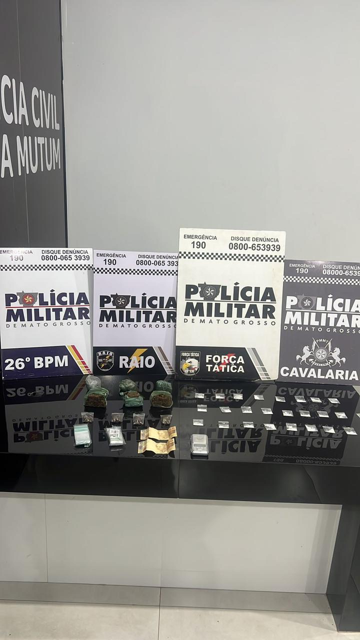 Uma ação da Polícia Militar resultou na apreensão de entorpecentes e na condução de três suspeitos — sendo dois menores de idade — na tarde do dia 14 de março de 2026, em Nova Mutum.