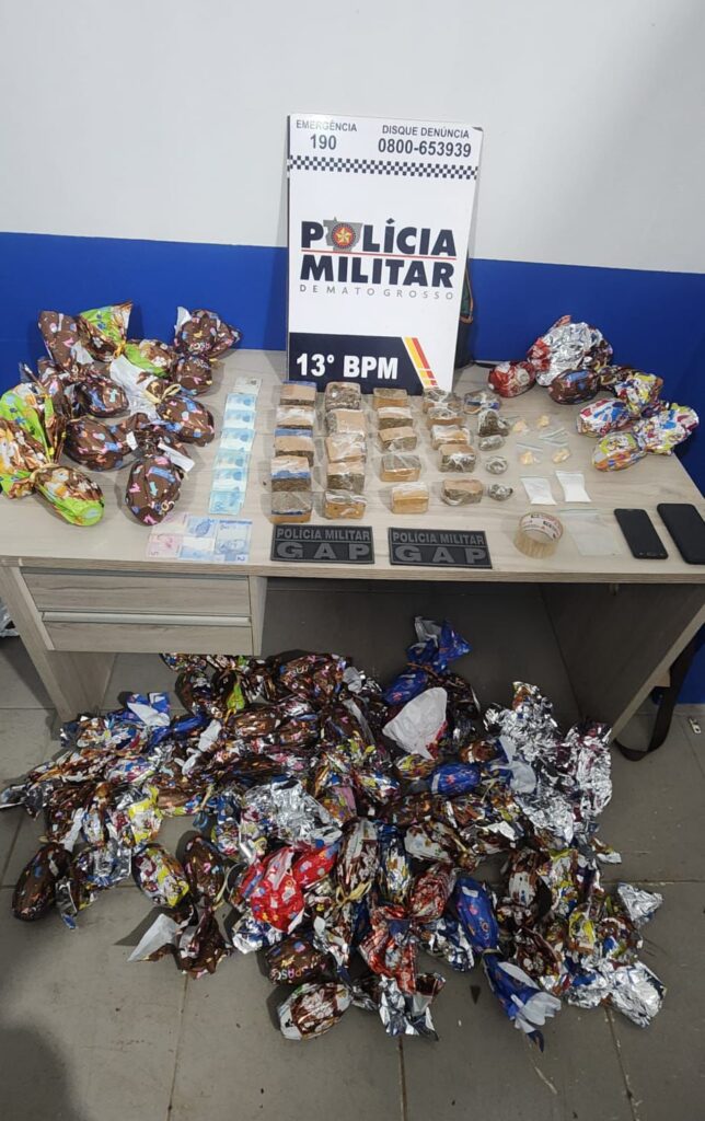 No local, também foram localizadas duas caixas contendo diversos ovos de Páscoa. Segundo apurado pelos policiais, os itens poderiam ser utilizados para distribuição à população com o objetivo de angariar apoio e cooptar pessoas para uma facção criminosa.