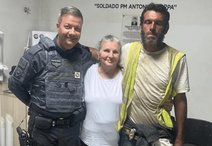 Reencontro de professor universitário desaparecido com a mãe, no interior de São Paulo Foto: PM/Reprodução