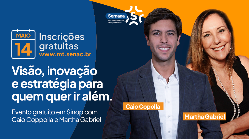 O Sistema Fecomércio-MT, por meio do Serviço Nacional de Aprendizagem Comercial em Mato Grosso (Senac-MT), realizará, no dia 14 de maio, uma programação especial dentro da “Semana S do Comércio” na cidade de Sinop (a 481 quilômetros de Cuiabá). O encontro receberá especialistas nacionais para discutir assuntos relevantes sobre economia e negócios.